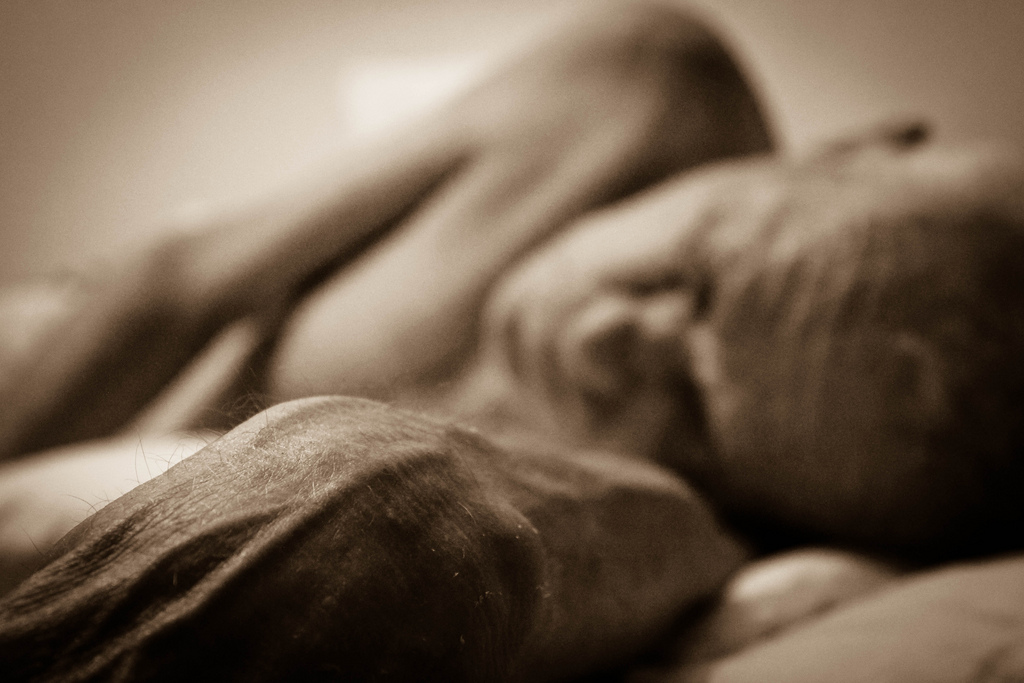 caress his naked flesh