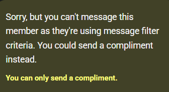 Or the app version "This kinkster has message filters on. Try sending a kinky gift instead"
