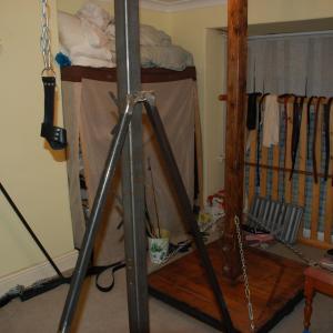 A typical event centres around people chatting, whether catching up with established friends or making new ones. Comparing toybags is a popular activity and informal workshops demonstrating toys or techniques are commonplace. We don't get involved in arranging play, but pre-agreed scenes or casual, pick-up play are always possibilities - we operate a closed door/private, open door/discrete watchers welcome policy. Depending on the weather we can add extra play spaces and/or the hot tub but it's likely this early in the year that we'll have to make do with the two main play areas. Available are a pillory, solid cage, whipping post, St Andrew's cross, bondage/suspension frame and spanking bench. Smaller items of kit include a violet wand, vampire gloves, a wide arrange of impact and sensory toys and many different restraints.
